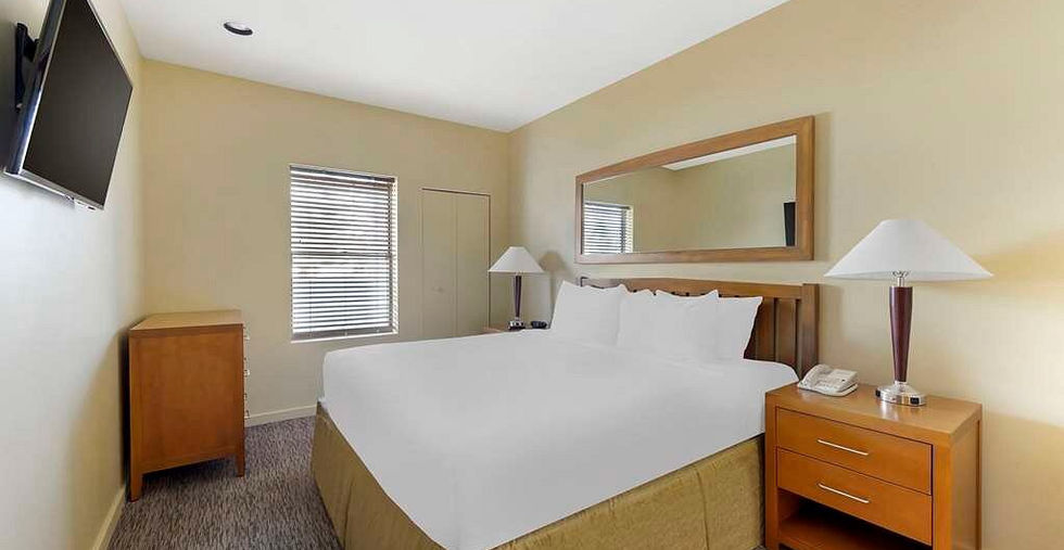 This 2-Bedroom Suite delivers a main bedroom with a king-size bed, a TV, and a private bathroom with a shower/tub combo. The Guest Bedroom has a queen-size bed, a TV, and a bathroom with a shower/tub combo. The living room includes a queen-size sleeping sofa, a TV, and a separate eating space. The fully fitted kitchen has a refrigerator, burner, oven, microwave, coffee maker, toaster, dishwasher, and cooking tools for in-room meals.
