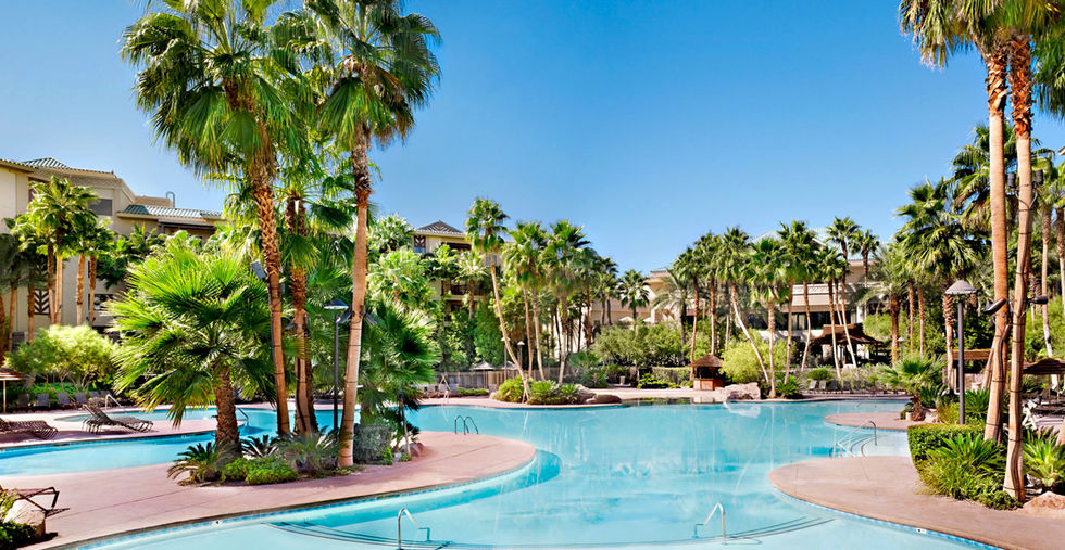 Enjoy an island-style retreat at Sahara Village Resort, located on Las Vegas Boulevard near Harry Reid International Airport and less than two miles from the world-famous Las Vegas Strip. This luxurious all-suite resort has everything you need for a relaxing vacation, including a spa, two fitness centers, an award-winning pool area with a Polynesian theme and a unique sand beach entrance, and the world-famous Lazy River with its cascading waterfall features. As an added bonus, guests can take advantage of Tahiti Village's many amenities, such as the two restaurants, spa, activity center, concierge, sundries shop, and many bars.