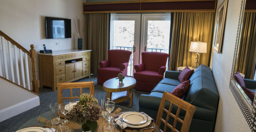 These spacious one-bedroom condo-style resort suites comfortably sleep up to four guests. Enjoy the comfort of a queen bed in the private bedroom and a sleeper sofa in the living area. You will also appreciate the convenience of private bedrooms, a kitchenette, and separate living/dining areas.